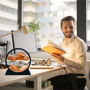 Sandsync ist kein gewöhnliches Deko Objekt. Es ist dein Anti-Stress-Gadget für den Schreibtisch. Beobachte, wie farbiger Sand hypnotisch langsam durch das Glas fließt und dabei immer neue Landschaften erschafft.